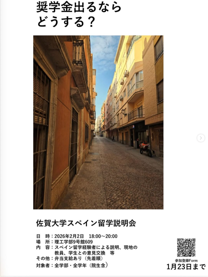 スペイン留学経験者や現地の先生からお話が聞けるまたとない機会です。皆さん是非ご参加下さい。