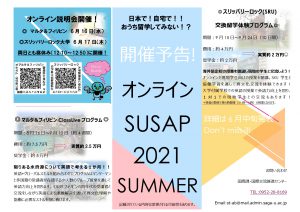 春に引き続き夏もオンラインSUSAPを開催予定です!!
